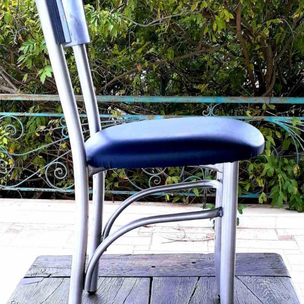 200 μεταλλικές με μπλε κάθισμα δερματίνης και ξύλινη πλάτη μάρκας Mexil.
